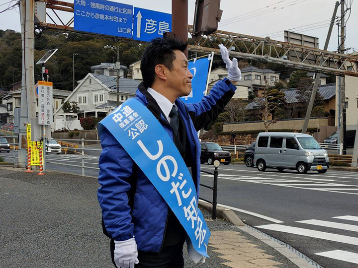 2月6日、下関市内(滝部) 篠田候補 2026.02.06 下関市を北上して豊北町の滝部まで。街宣は川棚、滝部、下関駅等。 人々の反応が日々、良くなっている。選挙とはこういうものだろう。残すはあと一日。 選挙カーで選挙区内を回りながら、助手席から見える風景。住宅街や山並み。住む人がいる場所は、やはりホッとする。この「ホッ」こそを守るのが政治である。 2月7日も下関市内。18時からシーモール前で街宣。